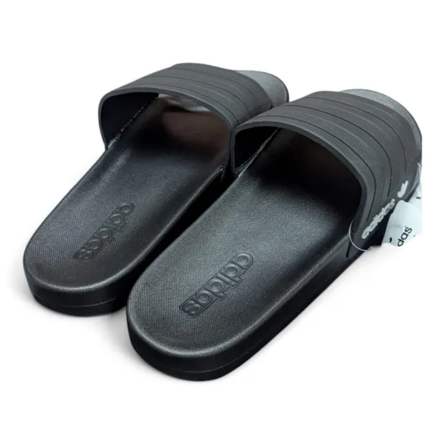 Experience timeless comfort and sporty style with the Adidas Adilette Comfort Slide Sandals in classic all-black. These slides feature a wide synthetic strap adorned with the iconic Adidas logo, providing a minimalist and versatile look. The contoured footbed offers exceptional cushioning, making them perfect for post-workout recovery, relaxing at home, or casual outings. The lightweight construction ensures all-day comfort, while the durable outsole offers reliable traction. Step into iconic Adidas style with these Adilette slides, now available in Dhaka, Bangladesh.