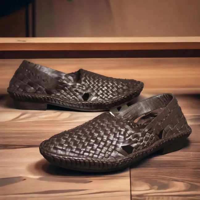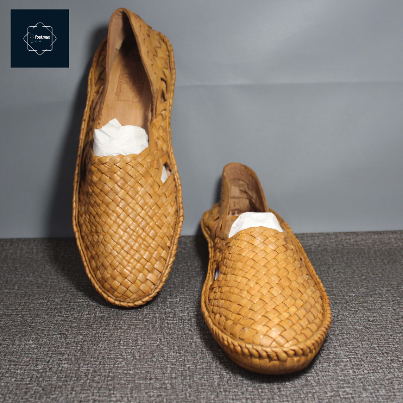 available in classic black and brown. Each pair is meticulously handmade by skilled artisans, combining time-honored craftsmanship with premium leather for a unique and authentic look. Designed for comfort, these Mojaris feature a durable sole and a snug fit, ideal for festive occasions, casual outings, or adding a touch of heritage to your everyday wear. Their detailed stitching and traditional design showcase the artistry of Kolhapuri footwear, making them an essential for those who value both style and cultural heritage.