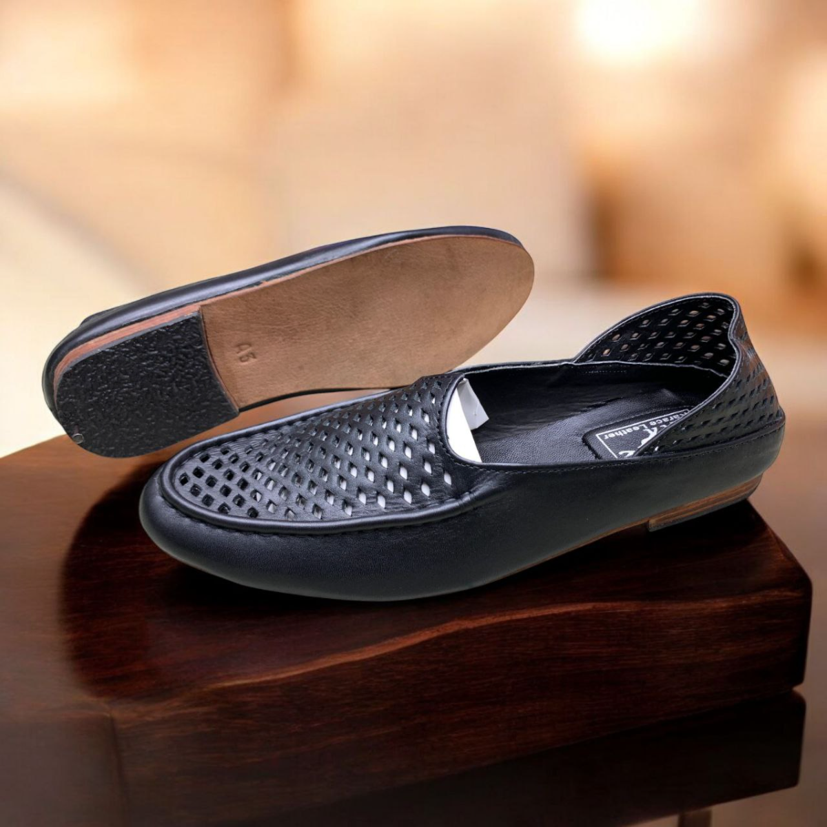 Discover timeless elegance with the Footmax Black Leather Loafer for Men — designed for everyday comfort and effortless style. Made from premium genuine leather with a breathable perforated upper, this slip-on shoe offers all-day freshness and flexibility. Perfect for office wear, casual outings, or festive occasions, it combines sophistication with superior craftsmanship. Its soft insole and durable sole ensure long-lasting comfort and grip. Step up your fashion game with Footmax — where quality meets affordability. Order now from Footmax.com.bd and enjoy fast delivery across Bangladesh!