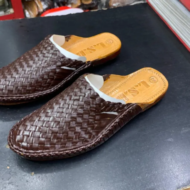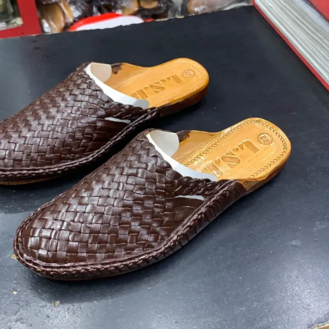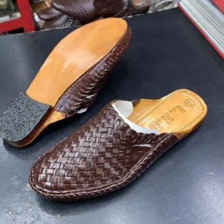 Experience the perfect blend of traditional craftsmanship and contemporary style with these Desi Hangover men’s handcrafted leather casual mules. Ideal for daily wear in Dhaka, Bangladesh, these mules feature a rich brown woven leather upper, showcasing meticulous artisanal work. The open-back design offers easy slip-on convenience, while the genuine leather insole ensures breathable comfort throughout the day. The sturdy sole provides reliable support for both indoor and outdoor use. Embrace a touch of cultural elegance with these unique and comfortable mules.