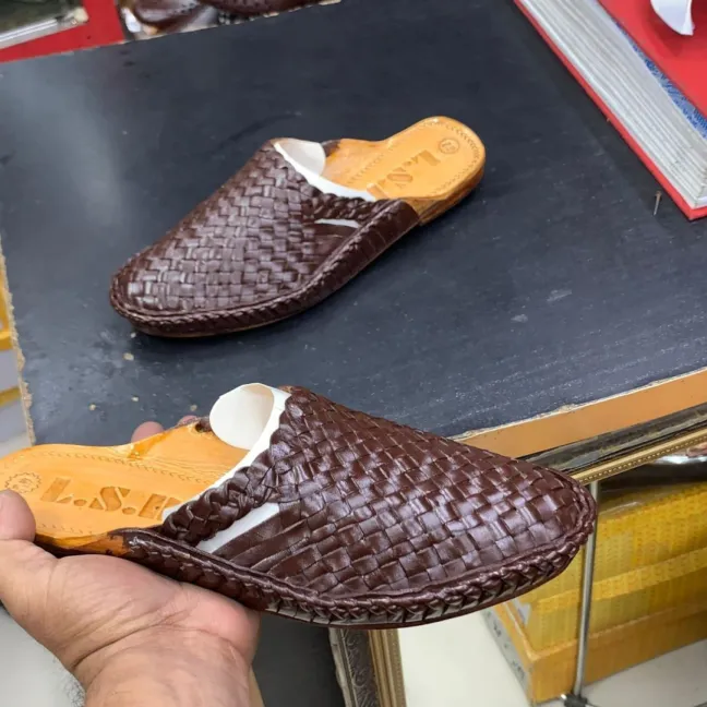 These Desi Hangover mules offer a unique combination of handcrafted artistry, comfort, and style, perfect for the discerning man in Dhaka. The rich woven leather and easy slip-on design make them ideal for daily wear, while the genuine leather insole ensures lasting comfort. Embrace the cultural heritage and distinctive style of Desi Hangover with these exceptional casual mules.