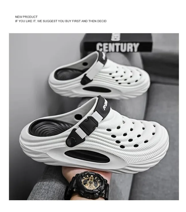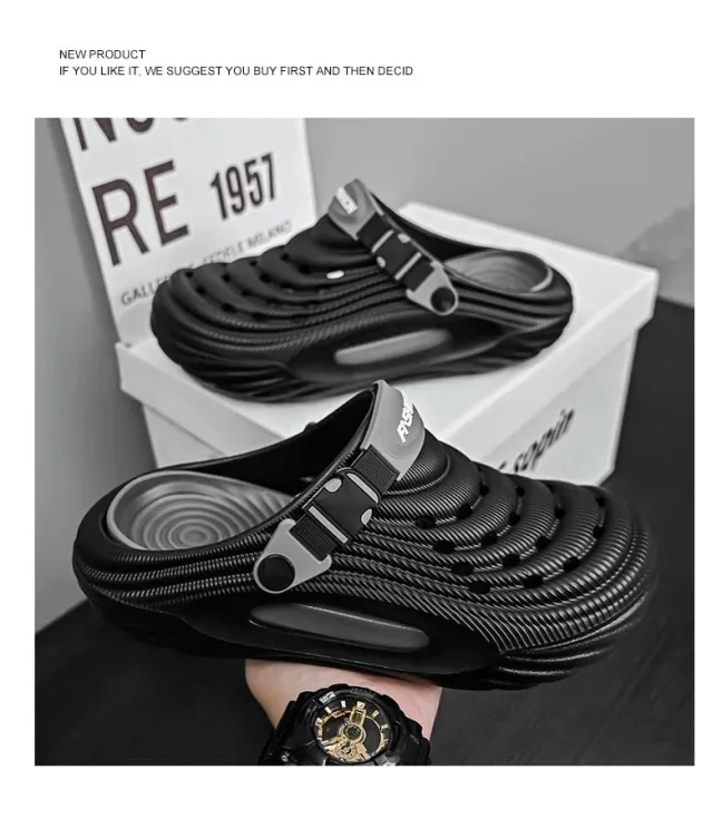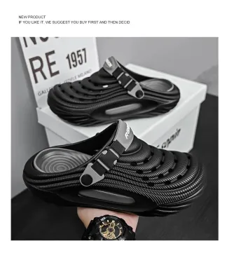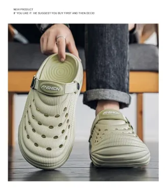 Our buckle sandals offer both fashion and adjustability. Discover our chic green sandals with two buckles and a comfortable cork-like sole. We also have a sophisticated thong-style sandal in dark brown suede with a buckle detail and a star embellishment, and a similar green thong-style sandal with a buckle and star. For a comfortable and versatile option, check out our light green clogs with an adjustable strap at the back, offering a secure fit, or the classic black version.