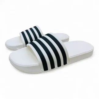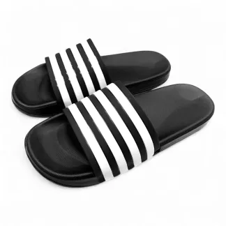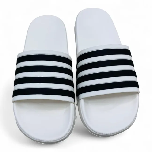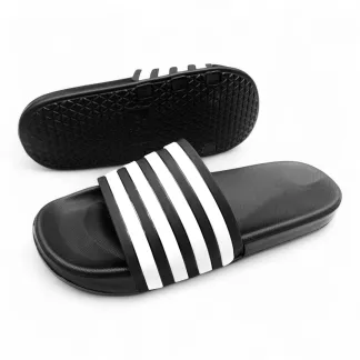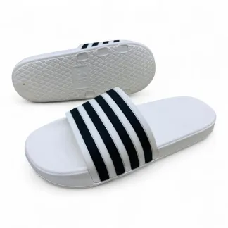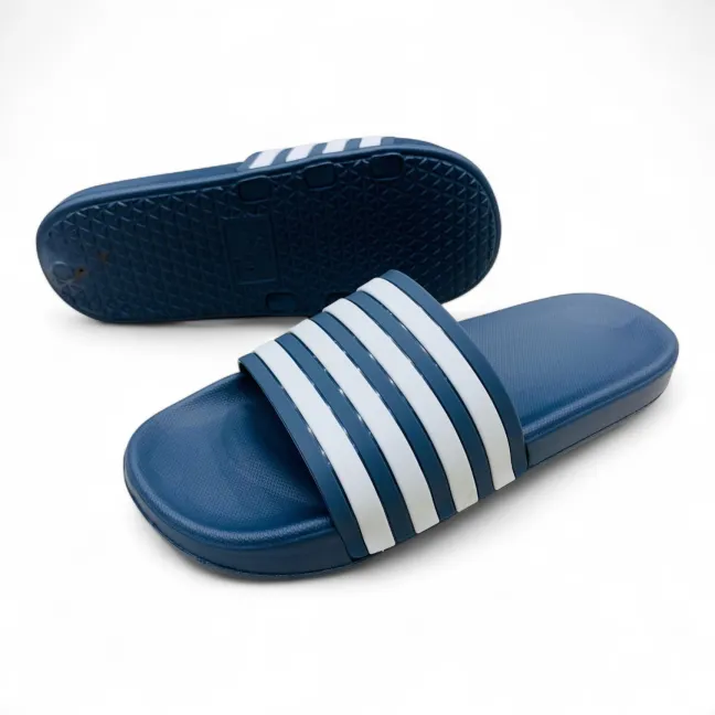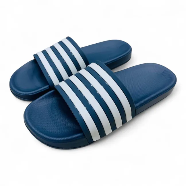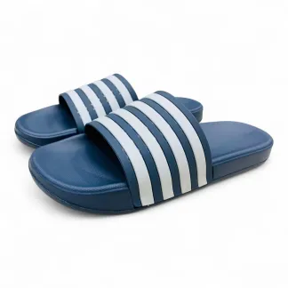 Men’s Adidas 3-Step Slides Slippers – Black, White & Blue | Sporty Comfort | Footmax.com.bd