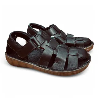 Embrace a blend of classic fisherman style and rugged appeal with these men’s black leather sandals. Inspired by iconic designs, these sandals feature a durable leather upper with a woven construction that provides both breathability and support. The adjustable ankle strap ensures a secure and customized fit, while the cushioned footbed offers all-day comfort. The sturdy outsole provides reliable traction, making them perfect for casual outings, outdoor adventures, or adding a touch of rugged style to your summer wardrobe. These sandals are crafted in Vietnam, offering quality and value.
