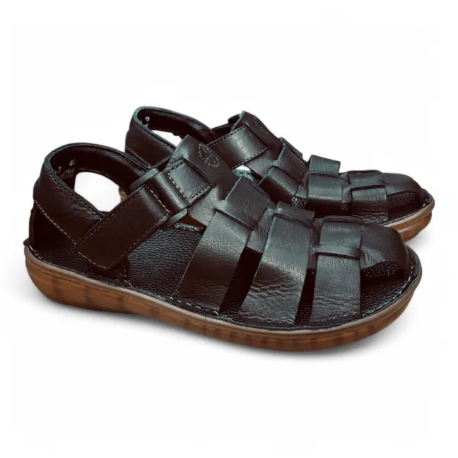 Men’s Black Leather Fisherman Sandals – Rugged Style & Comfort (Vietnam Made)