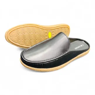 Men’s Black Leather Half Shoes – Premium Comfort Slip-On Loafers |