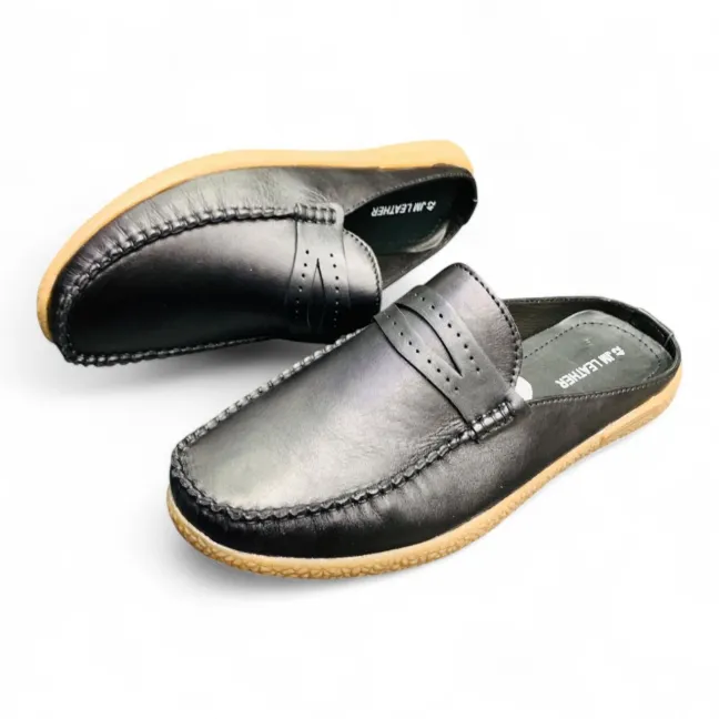 Men’s Black Leather Half Shoes  Premium Comfort Slip-On Loafers Footmax.com.bd
