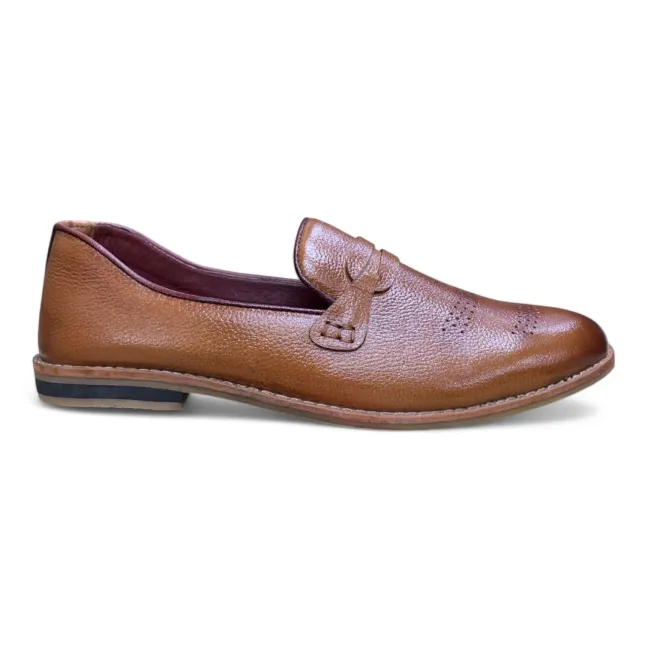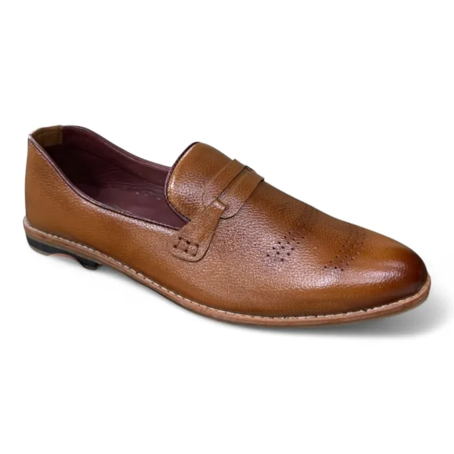 Elevate your casual and semi-formal style with these men’s brown leather loafers. Perfect for everyday wear and special occasions in Dhaka, Bangladesh, these loafers feature a smooth brown leather upper with subtle perforated detailing on the toe, adding a touch of sophistication to your look. The unique strap detail across the vamp adds a stylish accent, while the slip-on design ensures easy and convenient wear. The cushioned insole provides all-day comfort, and the durable outsole offers reliable traction.