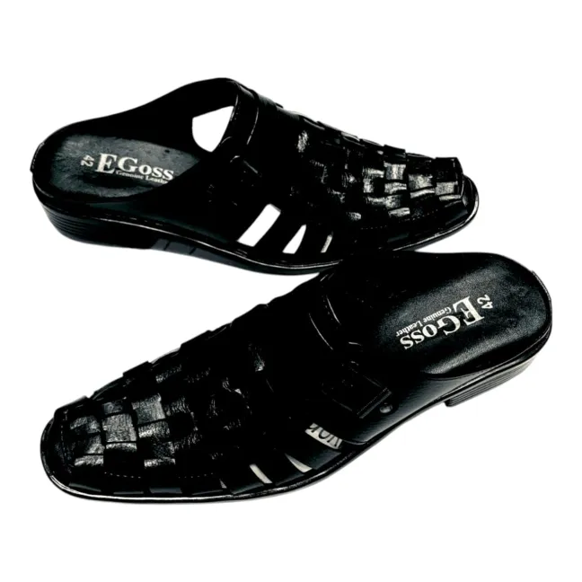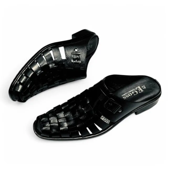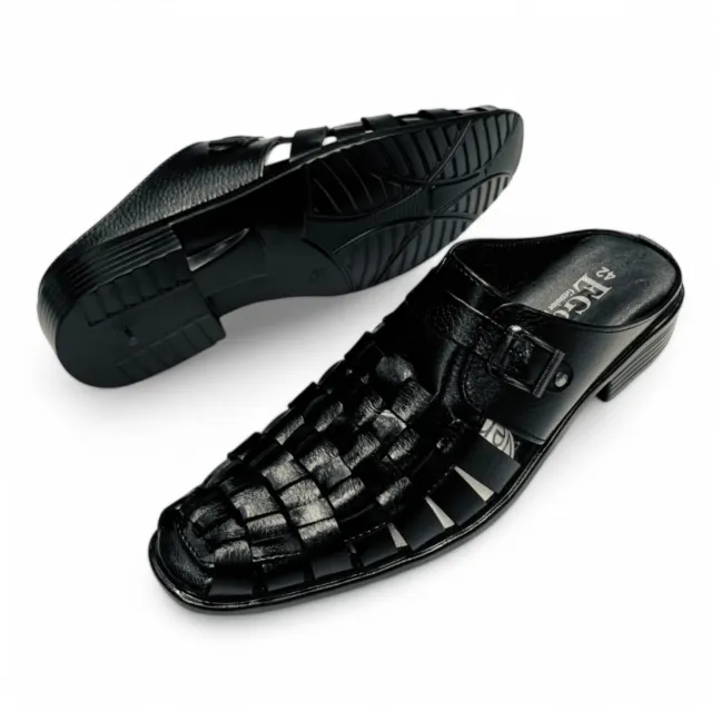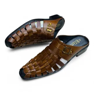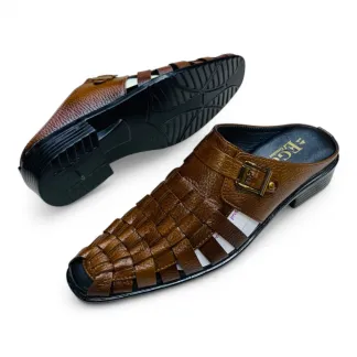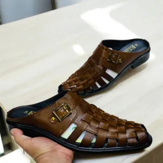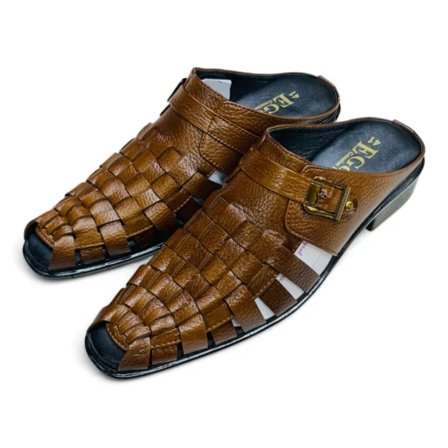 Men’s Brown Leather Woven Sandals – Adjustable Buckle