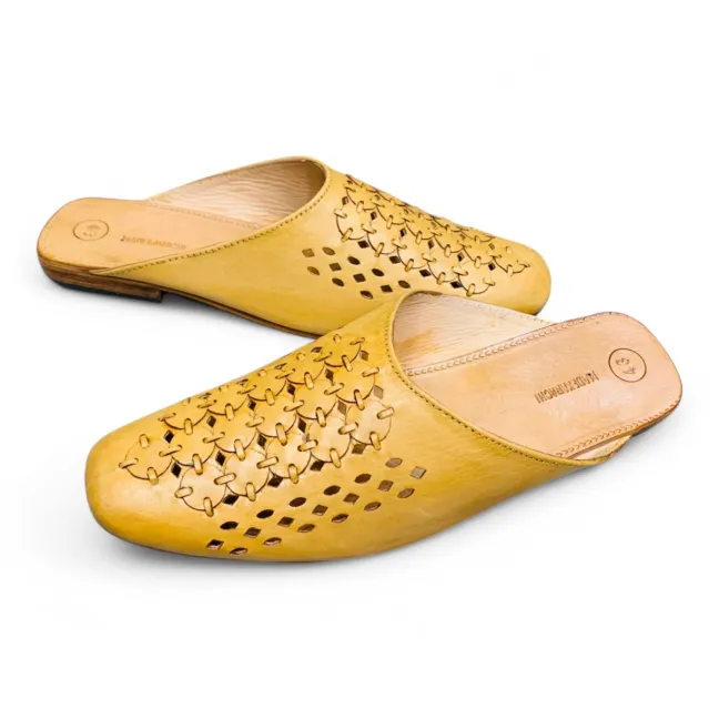 These mules are designed to provide both style and comfort. The unique cut-out design and vibrant yellow color make them a standout piece in your footwear collection. The soft leather and cushioned insole ensure all-day comfort, while the slip-on design makes them perfect for effortless style on the go.
