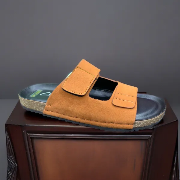Men’s Brown Velcro Cork Sandals | Premium Comfort Slides