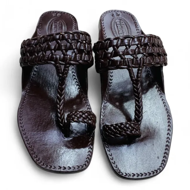 The Kalaphuri sandal features an adjustable strap design, allowing for a customized and secure fit. The sturdy leather sole ensures durability and excellent traction, making these sandals ideal for everyday wear, cultural events, or relaxed outings. Designed for larger foot sizes (44 to 46), these sandals offer a comfortable fit without compromising on style or craftsmanship.
