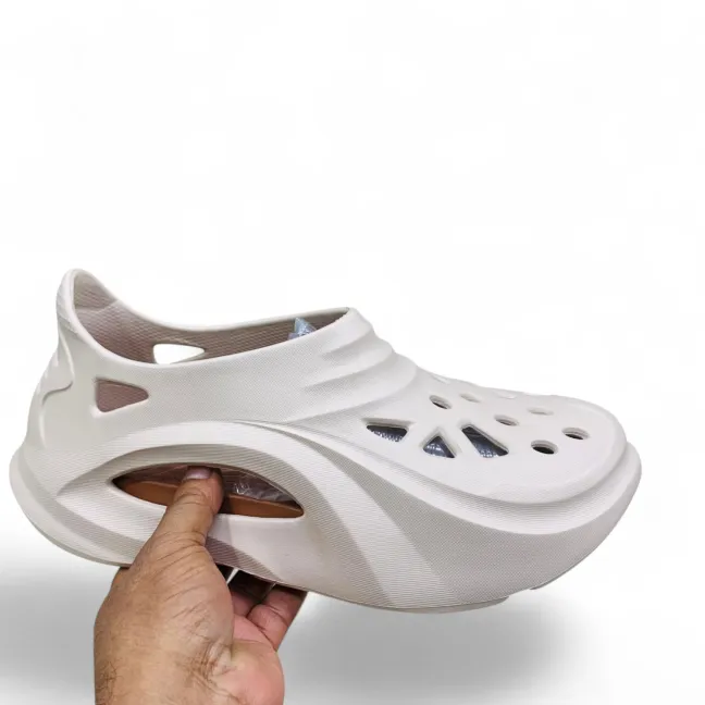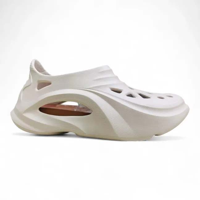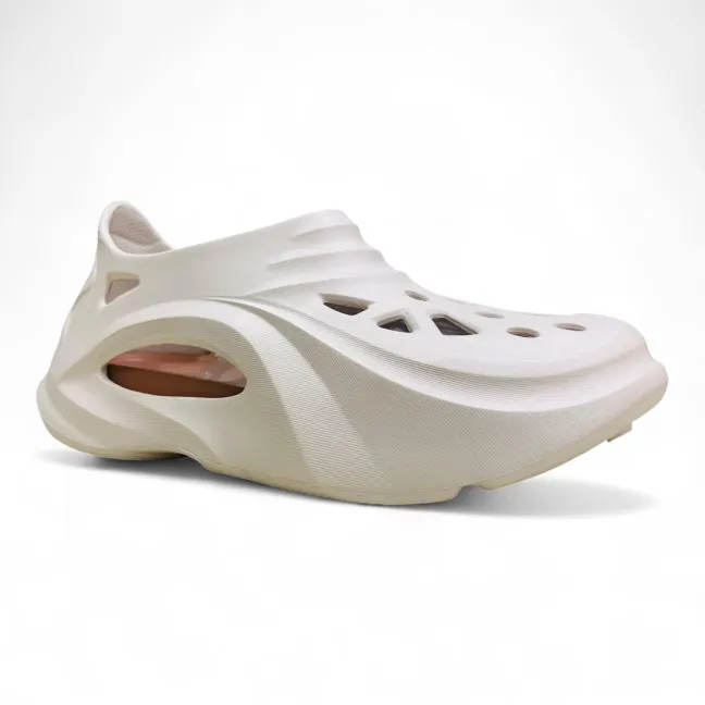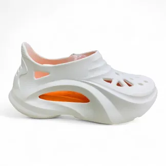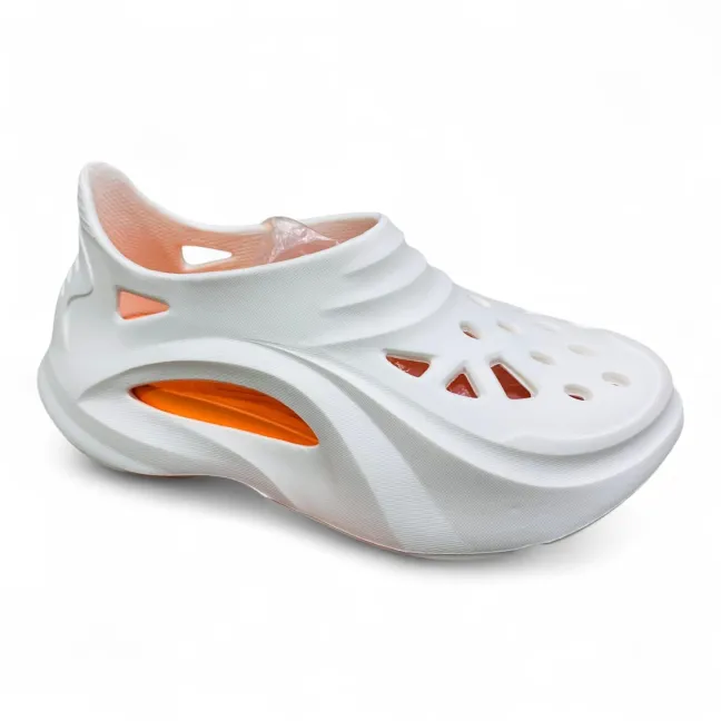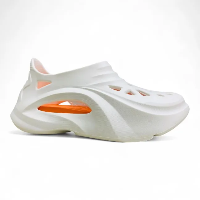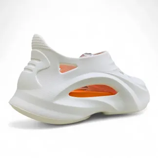 Material: Crafted entirely from premium EVA (Ethylene Vinyl Acetate), a material known for its lightweight, waterproof, and shock-absorbent properties. The striking color contrast of white and a pop of bright orange adds to their distinctive visual appeal.